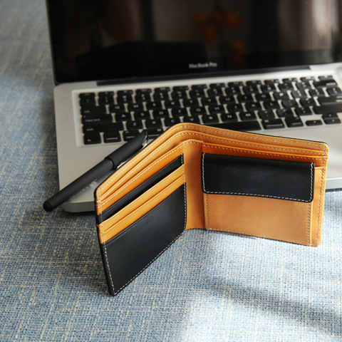 Handmade Vintage Da Bò Da Chủ Thẻ Ví Ngắn Chiều Dài Đồng Xu Ví Cho Nam Giới Và Phụ Nữ Da Chính Hãng